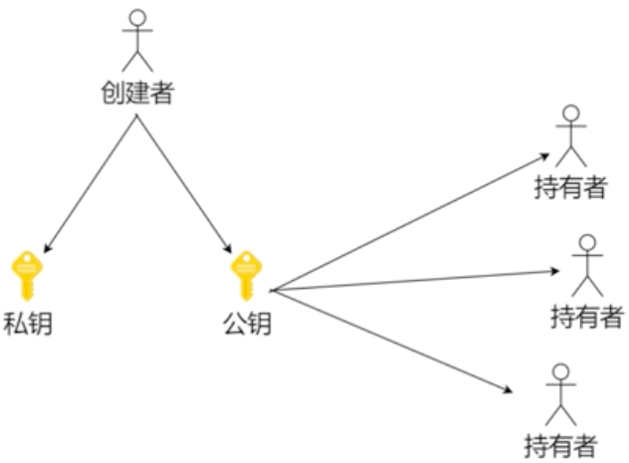 • 创建者创建一个秘钥对(分成公钥和私钥)