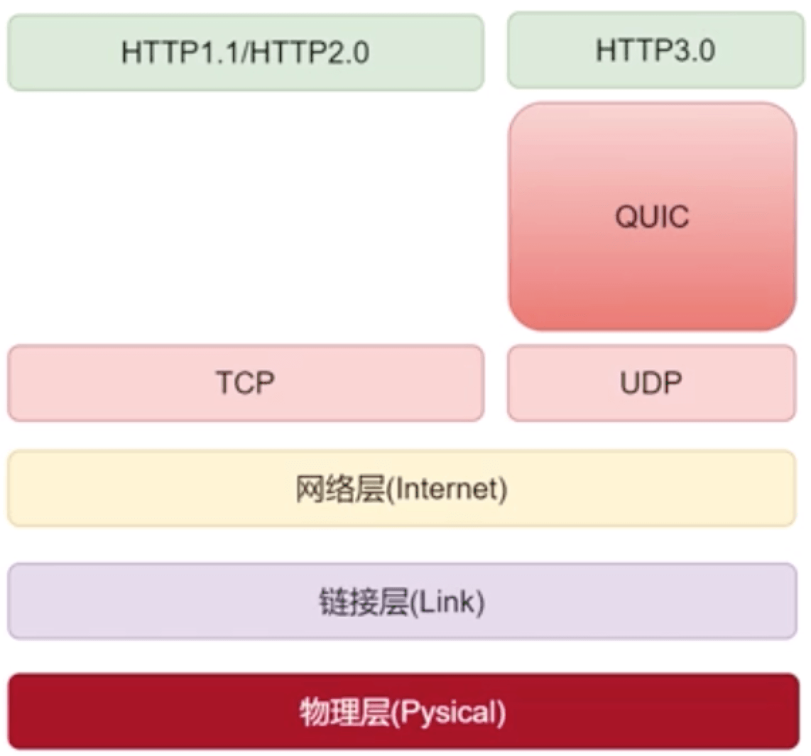 http1.1/http2.0中间还有一个加密层,还要对数据的压缩,QUIC自己层承担了这部分工作,优化做的非常足,所以速度很快;3.0不再改协议了,也没有这么多的概念,它是整个层重写了,是基于UDP的,因为要保证可靠性,它是基于文件传输做的重写;文本传输做的重写,这就是3.0。